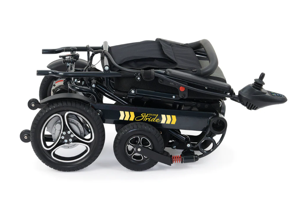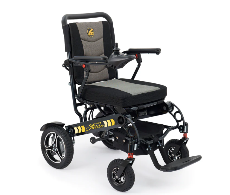 The GP301 Stride Power Wheelchair will take you where you want to go in comfort and style! The Stride is stylish with a two-tone grey and black seat with removable cushion and a tall back for long-lasting comfort while on the go.